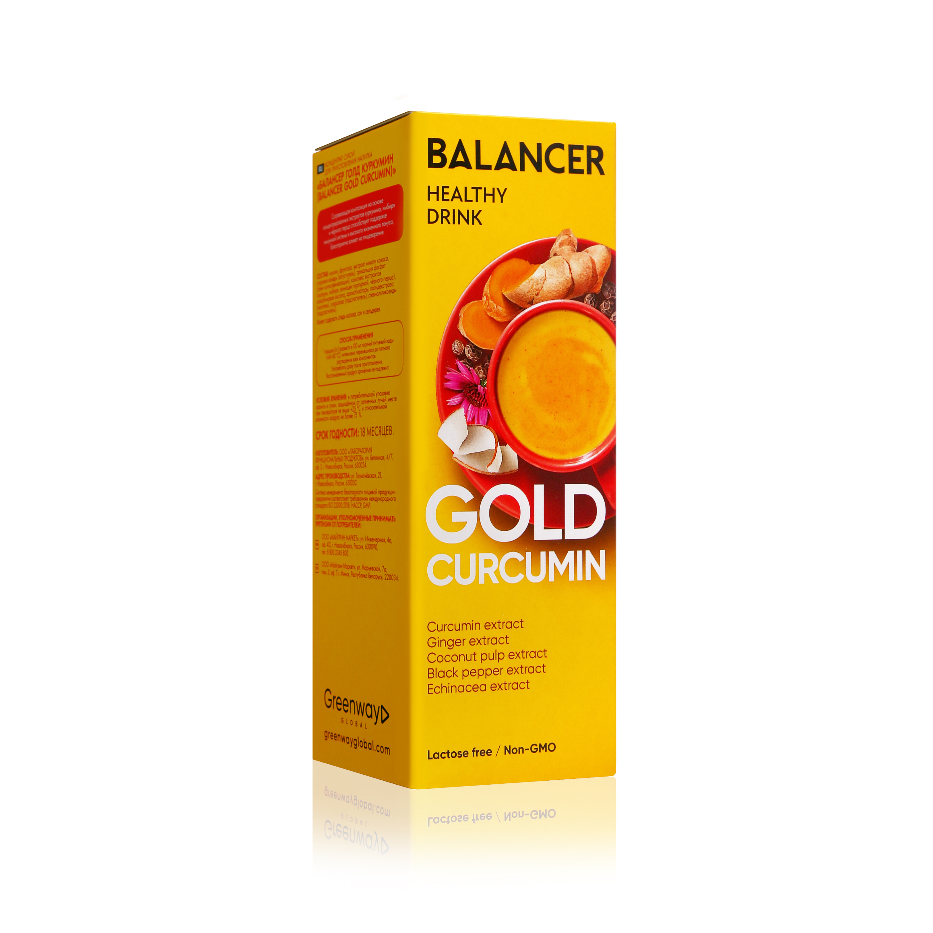 СОСТАВ: инулин, фруктоза, экстракт мякоти кокоса, гуаровая камедь (загуститель), трикальция фосфат (агент антислеживающий), комплекс экстрактов (куркумы, имбиря, эхинацеи пурпурной, черного перца), аскорбиновая кислота, ароматизаторы, полидекстроза (носитель), сукралоза (подсластитель), стевиолгликозиды (подсластитель). Может содержать следы молока, сои и сельдерея. ПИЩЕВАЯ И ЭНЕРГЕТИЧЕСКАЯ ЦЕННОСТЬ 1 порция 6 г % РСП 1 100 г % РСП 1 Энергетическая ценность, кДж / ккал 17 / 70 1 290 / 1200 12 Белки, г – – 1 1,3 Жиры, г – – 5 6 Углеводы, г 2 0,5 33 9 Пищевые волокна, г 3 10 50 167 1 РСП — рекомендуемое суточное потребление согласно приложению 2 к ТР ТС 022/2011 "Пищевая продукция в части е е маркировки".