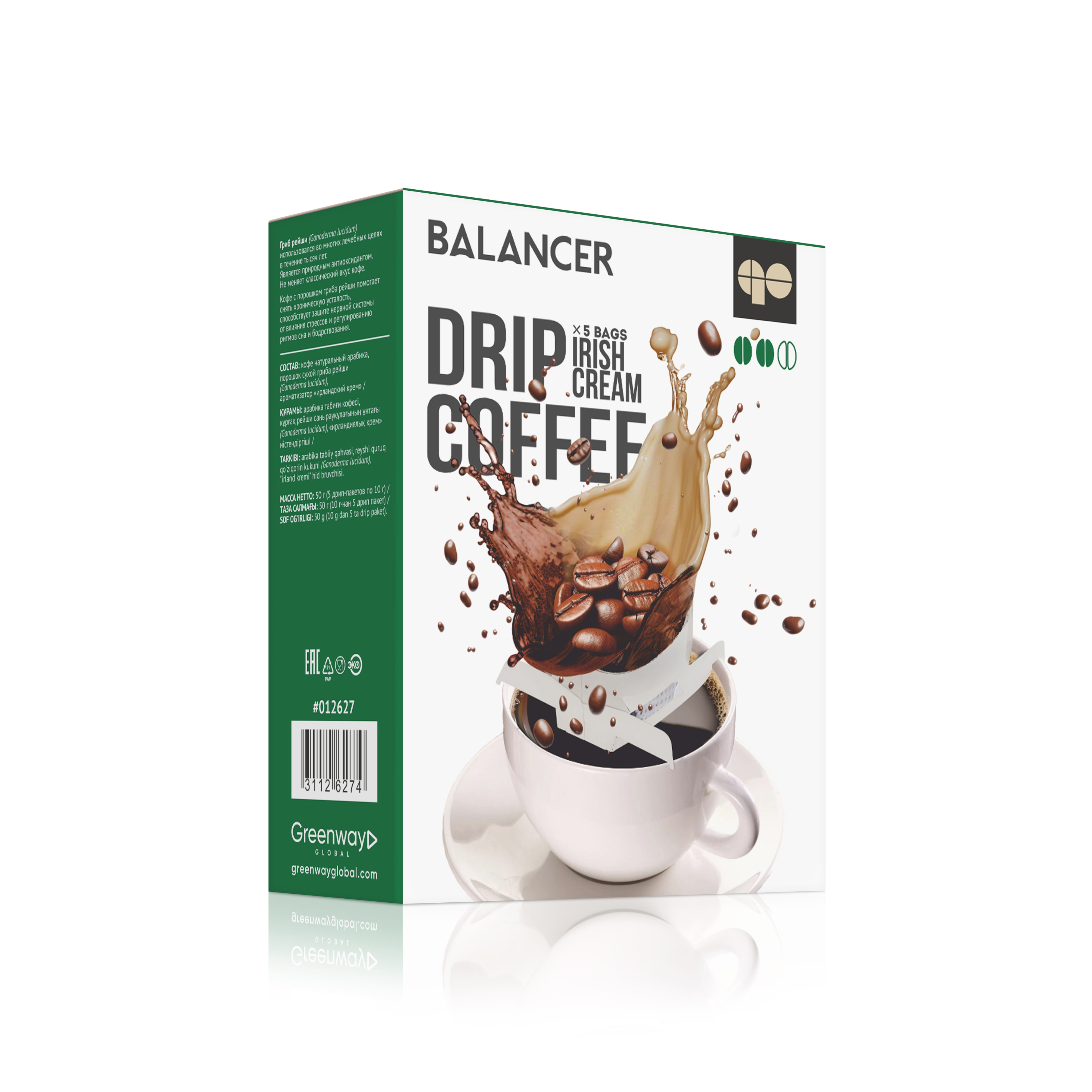Кофе натуральный арабика, порошок сухой гриба рейши (Ganoderma lucidum), ароматизатор "ирландский крем".