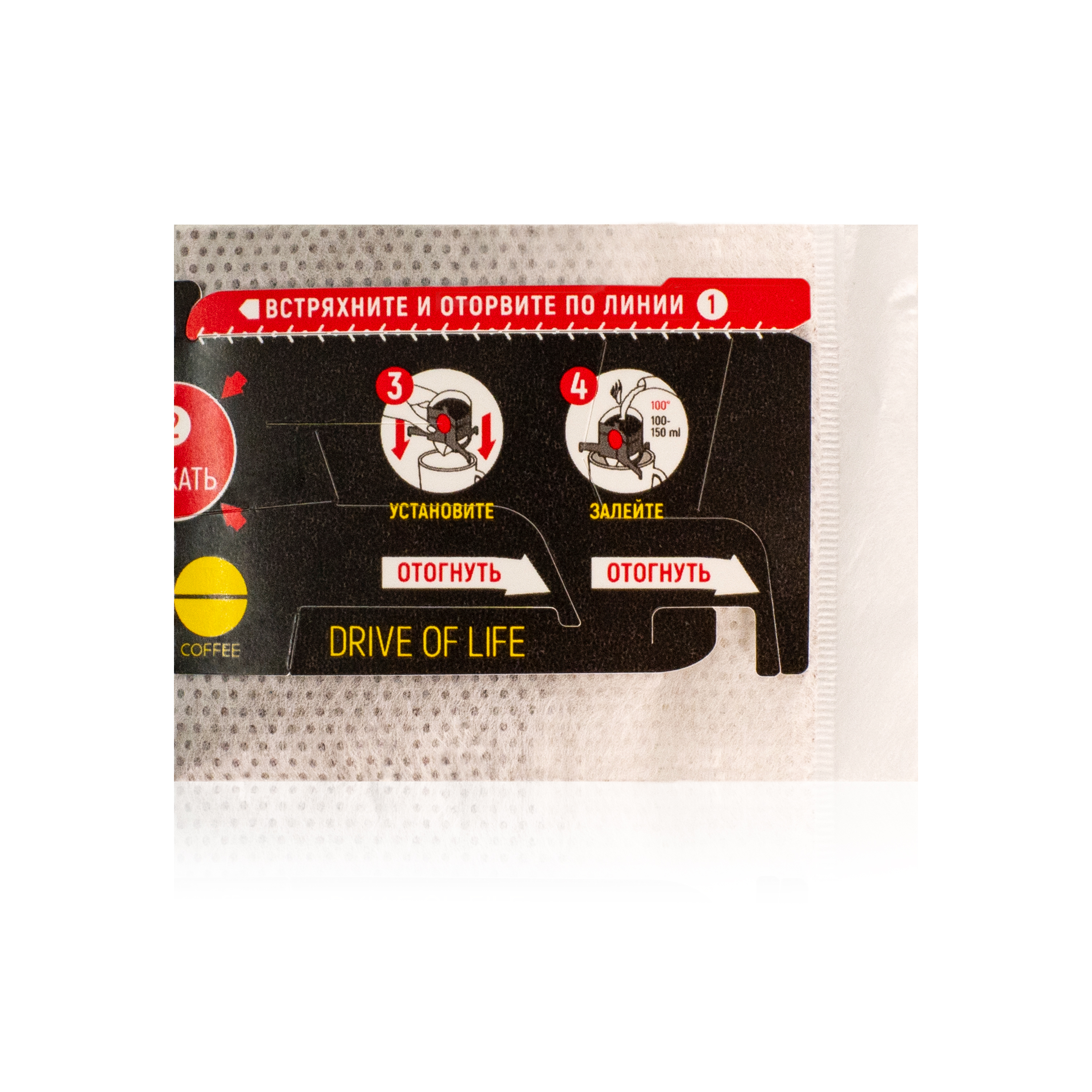 Откройте дрип-пакет, следуя указаниям на схеме. Нажмите на дрип-пакет согласно схеме и установите его на кружку. Налейте горячую воду до края дрип-пакета. Пролейте воду через фильтр 2-4 раза. Уберите дрип-пакет. Кофе готов. Срок годности: 18 месяца с даты изготовления. Хранить в оригинальной упаковке, в сухом, без посторонних запахов месте при температуре не выше +20 °С и относительной влажности воздуха не более 75 %.
