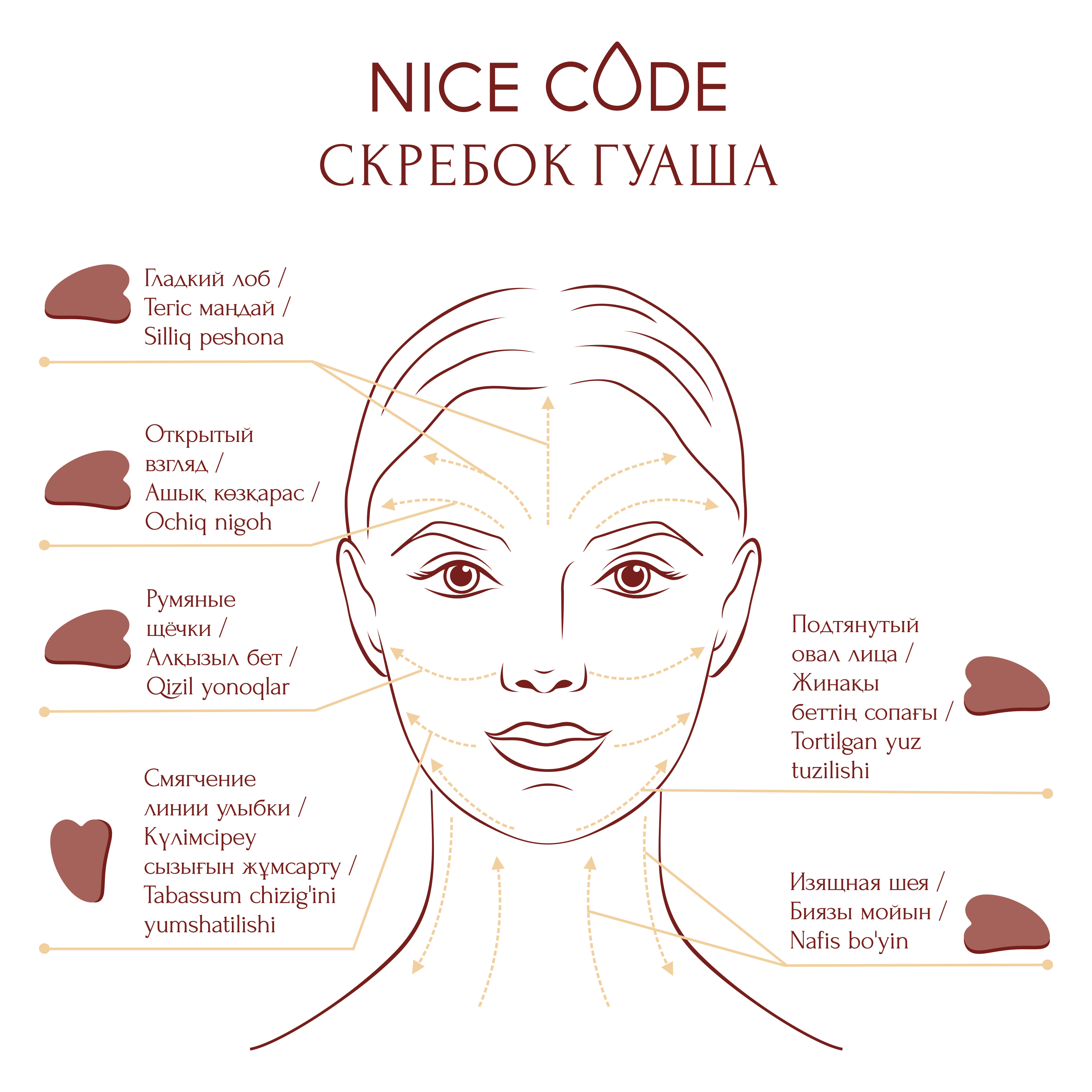 Скребок гуаша NICE CODE — ваш личный проводник к красивой и сияющей коже! Массаж Гуаша — древнейшая техника массажа для сохранения естественной красоты и молодости. Регулярный массаж в да...