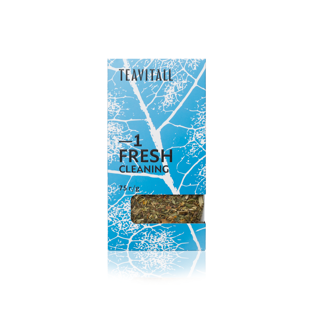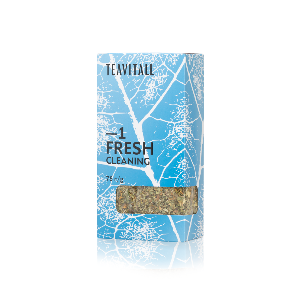 Сенна (лист), володушка золотистая (лист), репешок обыкновенный (лист), солодка голая (корень), золотарник обыкновенный (лист), крушина (кора), зелёный чай (лист), лимон (цедра), календула (цветки). Набор ингредиентов чайного напитка TEAVITALL FRESH способствует мягкому и комфортному очищению. Сенна помогает выведению излишней жидкости и мягкому очищению кишечника. Репешок обыкновенный обладает желчегонным и мочегонным свойствами. Солодка голая способствует выведению токсинов. Крушина оказывает слабительное действие, обусловленное наличием антрагликозидов, вызывающих раздражение рецепторов слизистой оболочки толстого кишечника. Зелёный чай известен как природный антиоксидант. В запоминающемся вкусе чайного напитка наиболее ярко проявляются травяные ноты, которые оставляют сладковатое послевкусие солодки и бодрящую кислинку лимона.
