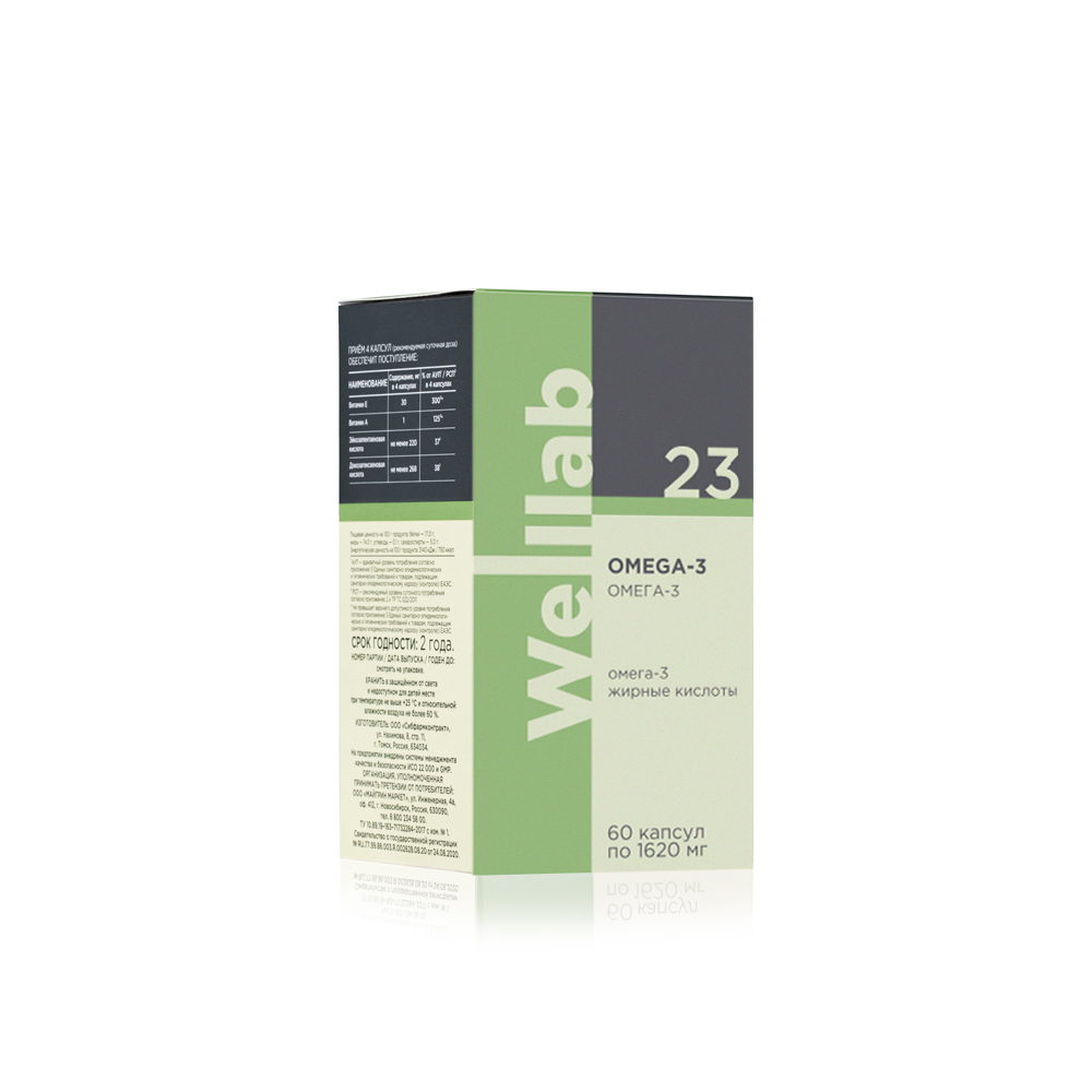 WELLLAB OMEGA-3 содержит концентрированный рыбий жир из дикой океанической рыбы. Омега-3 жирные кислоты способствуют контролю уровня холестерина, поддержанию подвижности суставов, положит...