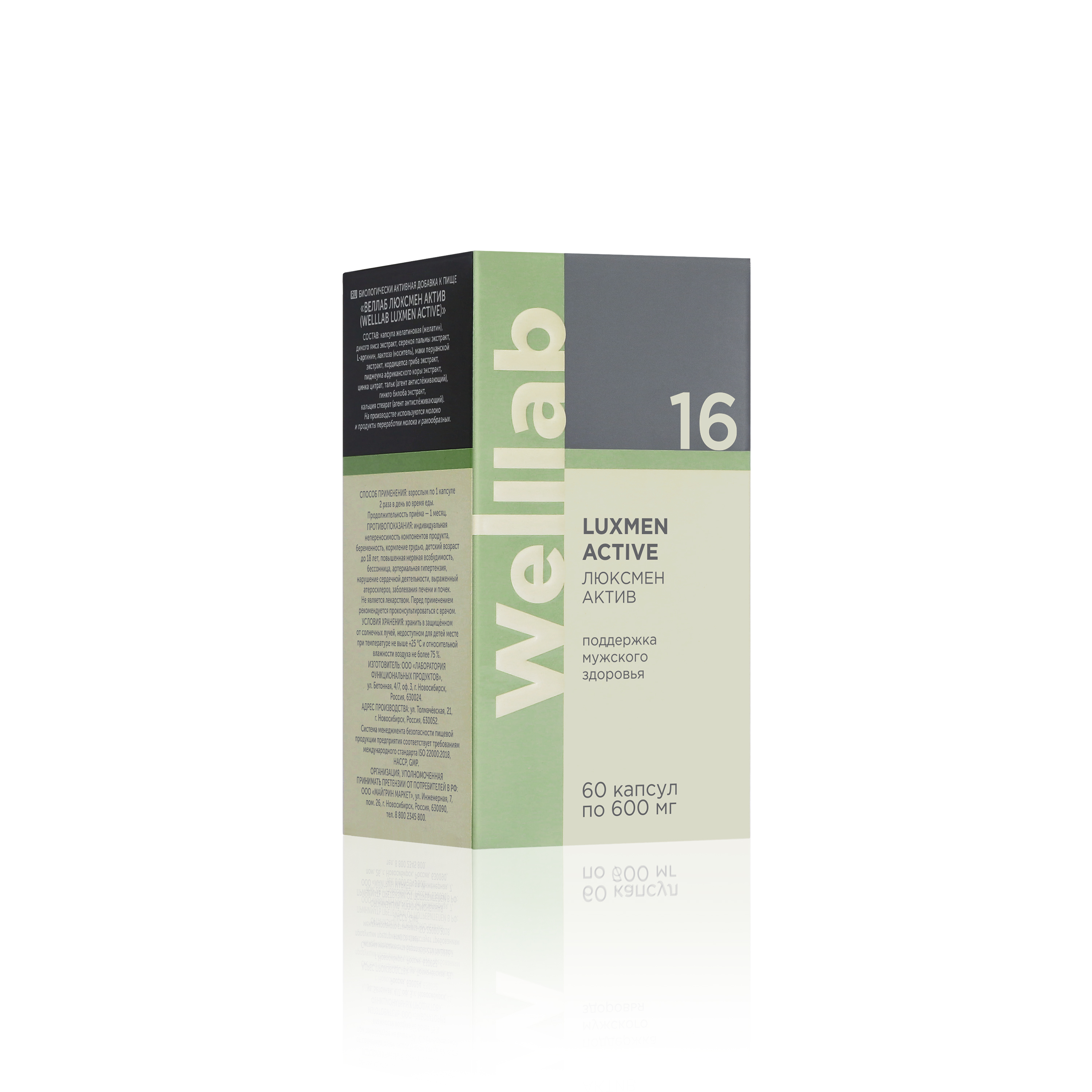 Капсула желатиновая (желатин), дикого ямса экстракт, серенойи пальмы экстракт, L-аргинин, лактоза (носитель), маки перуанской экстракт, кордицепса гриба экстракт, пиджеума африканского коры экстракт, цинка цитрат, тальк (агент антислёживающий), гинкго билоба экстракт, кальция стеарат (агент антислёживающий). Приём 2 капсул (рекомендуемая суточная доза) обеспечит поступление: Наименование Содержание, мг % РСП 1 / АУП 2 Цинк 22,5 150 1* Флавонолгликозиды в пересчёте на рутин 4,8 162 2 1 РСП — рекомендуемое суточное потребление. 2 АУП — адекватный уровень потребления. * Не превышает верхнего допустимого уровня потребления.